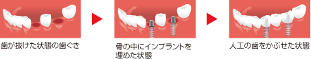 インプラントとは、失ってしまった歯を、元の自然の歯に近い状態にする治療法です。